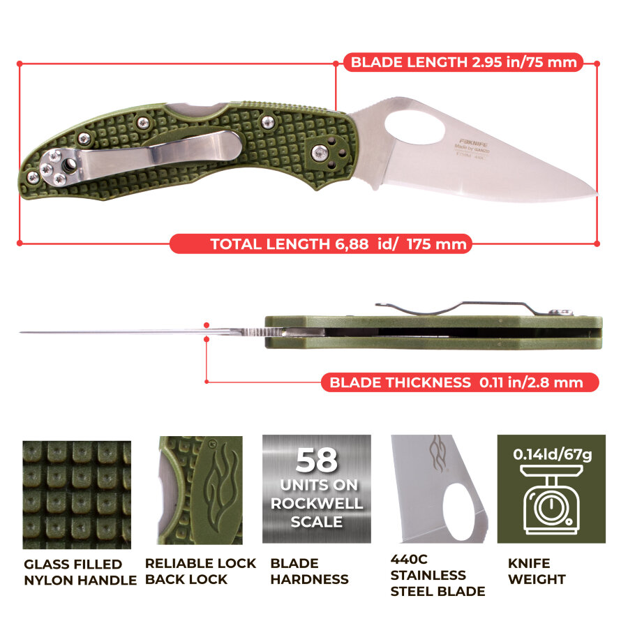 Materialul lamei 440C (58-60 HRC)