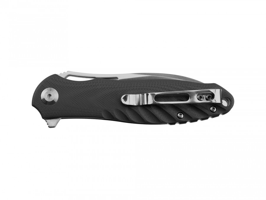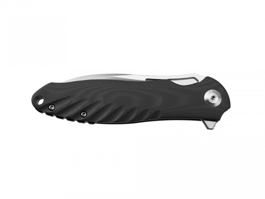 Mânerul este fabricat din G10 tradițional, care îi conferă rezistență la uzură, protecție la temperaturi ridicate, umiditate și rezistență la deteriorare. De asemenea, acest material, care este un plastic din fibră de sticlă, ar putea fi ușor vopsit. Este dur la atingere. Cuțitul este confortabil de ținut în palma mâinii, nu se mișcă și nici nu alunecă. Produsul aparține categoriei așa-numitelor flippers.