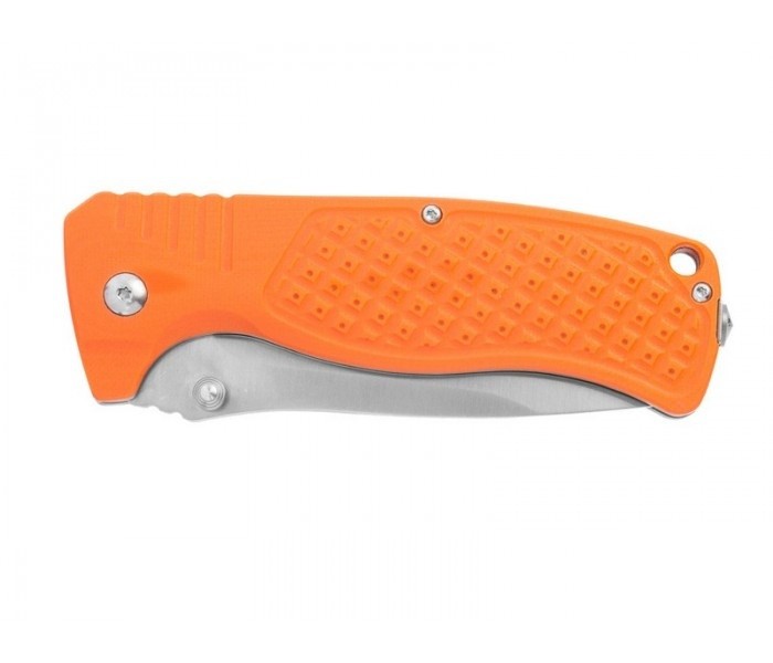 Pentru mânerul cuțitului, producătorii au ales același oțel inoxidabil, precum și tipul modern de plastic din fibră de sticlă - G10. Aparține materialelor compozite cu rezistență ridicată și poate rezista principalelor tipuri de coroziune. Cumpărătorii pot alege cuțite cu curele de trei culori diferite: negru clasic, verde sau portocaliu. Pe partea din spate a mânerului există o clemă metalică din oțel pentru a fixa cuțitul în buzunar sau centura de forță.