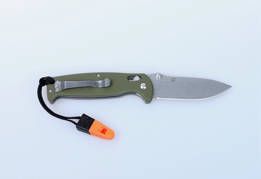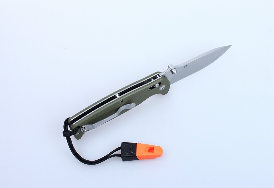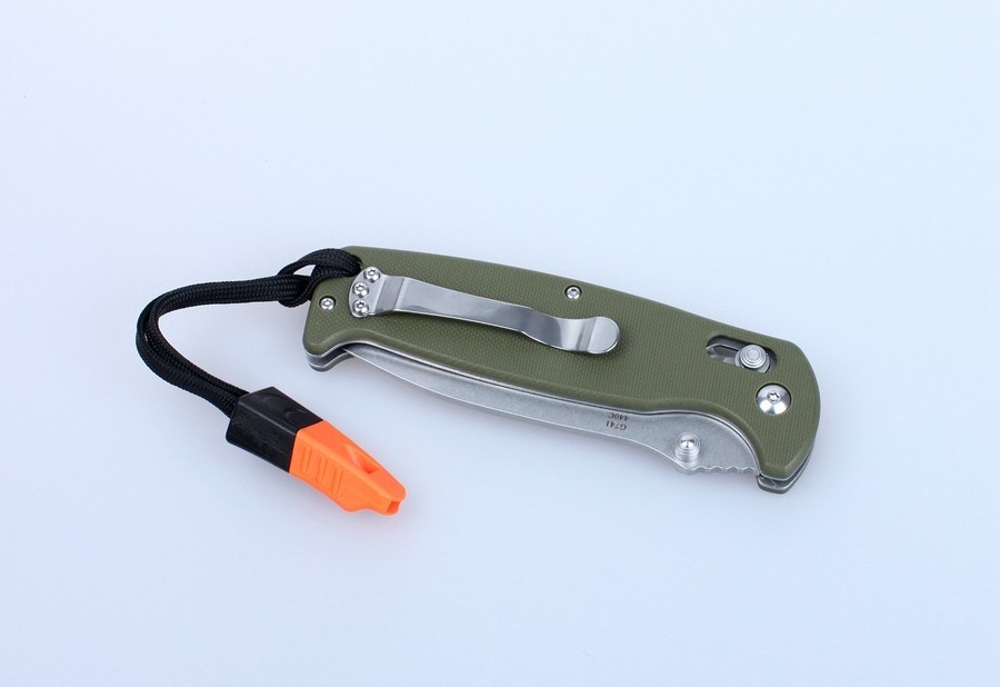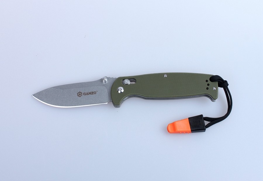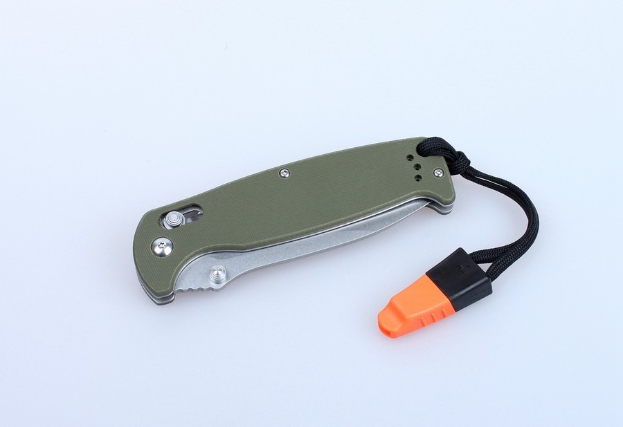 Modelul Ganzo G7412 s-a axat pe turiști, pescari și alți pasionați de natură. Acest cuțit pliabil cu lamă din oțel inoxidabil și accesorii opționale precum fluier atașat la curea.