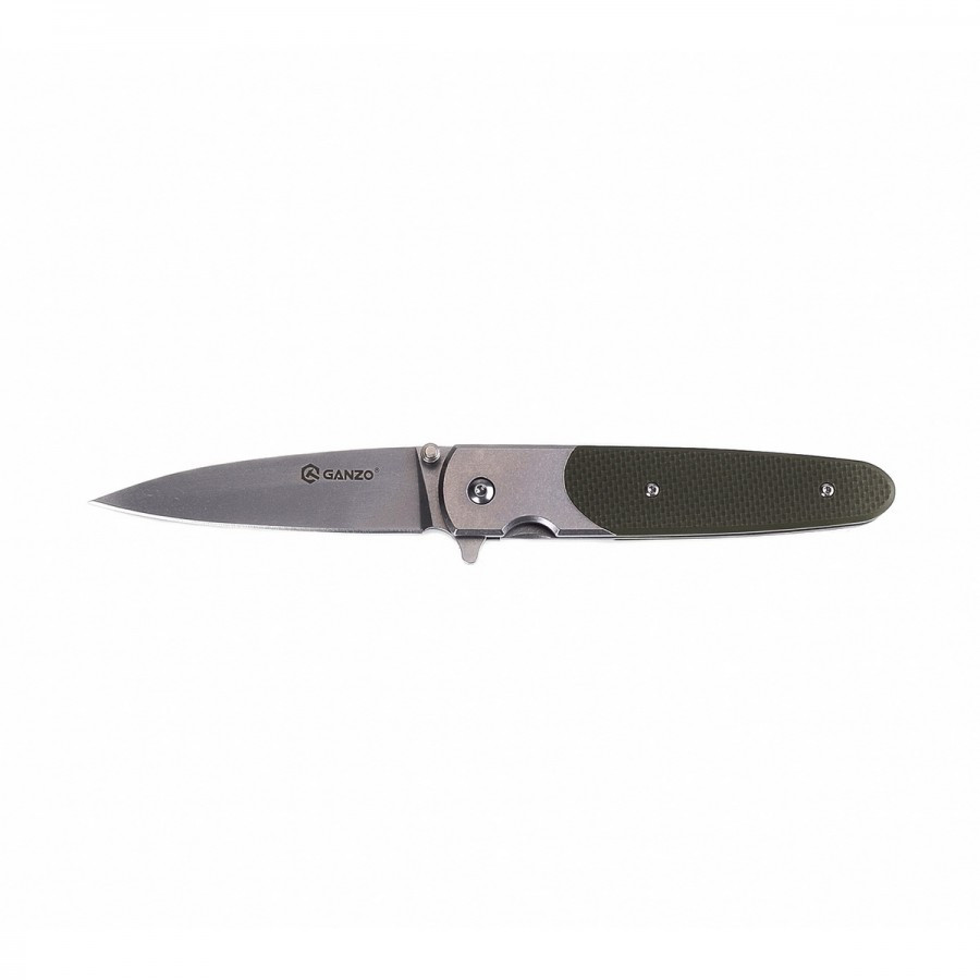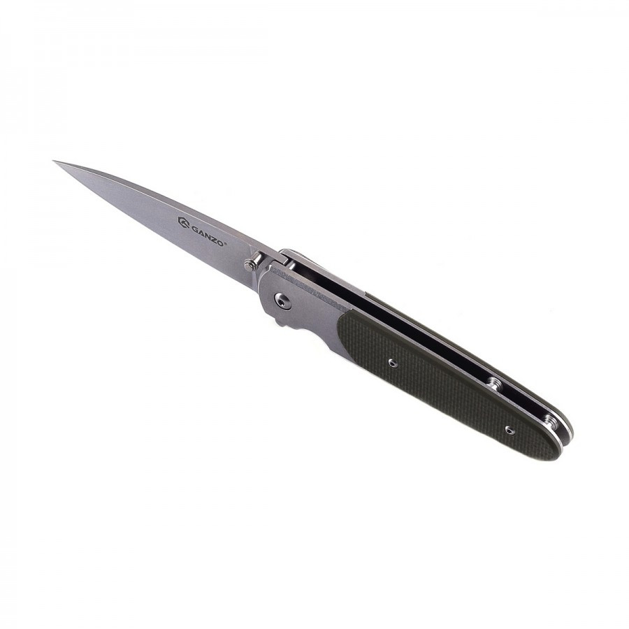 Ganzo G743-2 are un mâner combinat. Zona din apropierea lamei (aproximativ o treime din lungime) este, de asemenea, realizată din oțel și are același tratament ca și lama. Pe partea rămasă, ambele părți ale mânerului au plăci de acoperire din compozit din fibră de sticlă cunoscută sub numele de G10. Sunt fixate la bază cu două șuruburi mici. Suprafața plăcilor de acoperire este rugoasă prin aplicarea unei mici moleturi. Acest lucru ajută la menținerea cuțitului în mână și mai strâns dacă palmele sunt umede. O parte a mânerului are o clemă fixă care este tot din oțel. Relocarea lui este imposibilă în acest model.