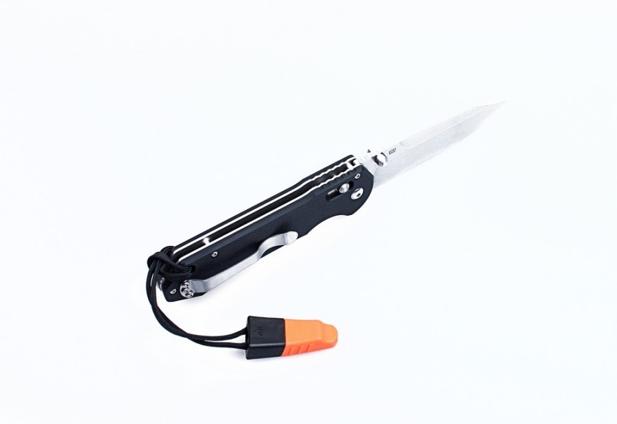 În plus, un șnur mic este conectat la mâner și există un fluier pe cealaltă parte a acestuia. Deci, cuțitul Ganzo G7452-WS are funcționalitate maximă pentru turiști. Când pleci într-o excursie în natură, poți să-ți anunți prietenii despre locația ta folosind acest fluier.