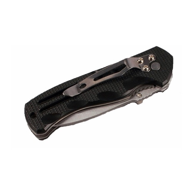 Mânerul este fabricat din plastic negru de înaltă calitate. Forma ergonomică a mânerului în combinație cu structura canelată permite să țineți cuțitul confortabil în mână. Mânerul are o clemă specială de prindere, care poate fi utilizată pentru a fixa produsul de centura de îmbrăcăminte sau de ținută. Mai mult, pe călcâiul mânerului există o gheară specială care poate fi utilizată pentru spargerea sticlei sau a altor materiale.