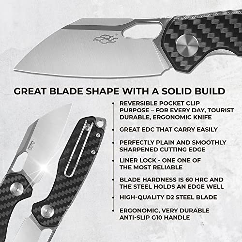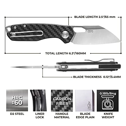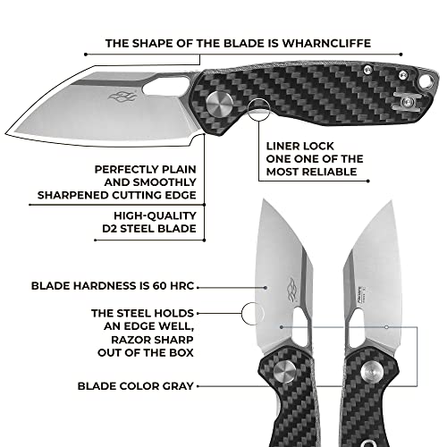 Modelul Firebird FH924 atrage imediat atenția prin design, iar cunoscătorii de cuțite de calitate îi laudă foarte mult performanța. Acest cuțit este recomandat pentru excursii în natură, precum și pentru utilizare auxiliară în medii urbane. Va fi util să efectuați aproape orice muncă, ceea ce înseamnă că este cea mai potrivită pentru turiști, pescari, sportivi și toți ceilalți oameni activi. Lama pentru acest model este fabricată din oțel popular cu conținut ridicat de carbon – D2. Acest aliaj inoxidabil, a cărui rezistență la coroziune este crescută prin adăugarea de crom și nichel. Duritatea sa este de 60 HRC, iar oțelul ține bine o margine. Forma lamei este Wharncliffe. Cuțitul are o margine de tăiere perfect netedă și ascuțită. Două treimi din lungimea capului, pornind de la mânerul cuțitului, de asemenea făcut aproape drept, dar apoi se face o coborâre ascuțită până la marginea cuțitului. La această parte a lamei, există o margine falsă. Dimensiunea lamei modelului Firebird FH924 este de 65 mm lungime. Grosimea lamei ajunge la 3,4 mm. În etapa finală, lama cuțitului este lustruită cu satin. După o astfel de procedură, pe suprafața metalului apar mici crestături transversale, care nu afectează netezimea lamei, dar fac mici zgârieturi aproape invizibile. Mânerul acestui cuțit este realizat dintr-un material durabil numit Fibra de carbon. Este mai rezistent decât plasticul obișnuit, deși pare. Acest material nu se estompează la soare, nu este susceptibil la apă, poate rezista la stres mecanic sever. Suprafața mânerului este special făcută texturată, astfel încât cuțitul să nu alunece în palme. Forma este ergonomică și vă permite să lucrați confortabil cu un cuțit chiar și pentru o perioadă lungă de timp. La capătul mânerului, există găuri speciale în care proprietarul cuțitelor poate înfileta șnur. De asemenea, există o clemă metalică atașată de mâner. Poate fi mutat în spatele mânerului, dacă este necesar.