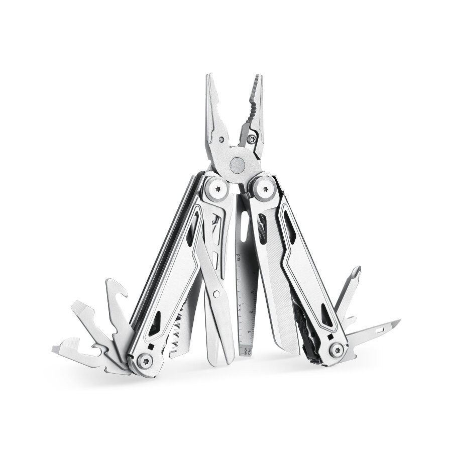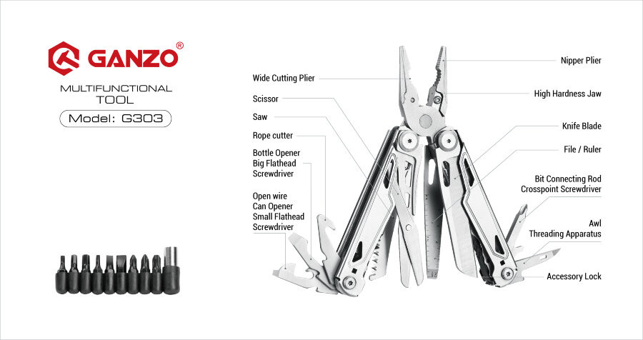 Instrument multifuncțional G303 convenabil și compact de la Ganzo®. Un set mare de instrumente vă permite să utilizați acest model pentru repararea completă a diferitelor echipamente. Toate sculele multifuncționalei G303 sunt fabricate din oțel inoxidabil 420. Bițile incluse sunt fabricate din oțel carbon. Mânerele metalice ale instrumentului multifuncțional au o suprafață structurată, care vă ajută să țineți instrumentul cu încredere în timpul lucrului.