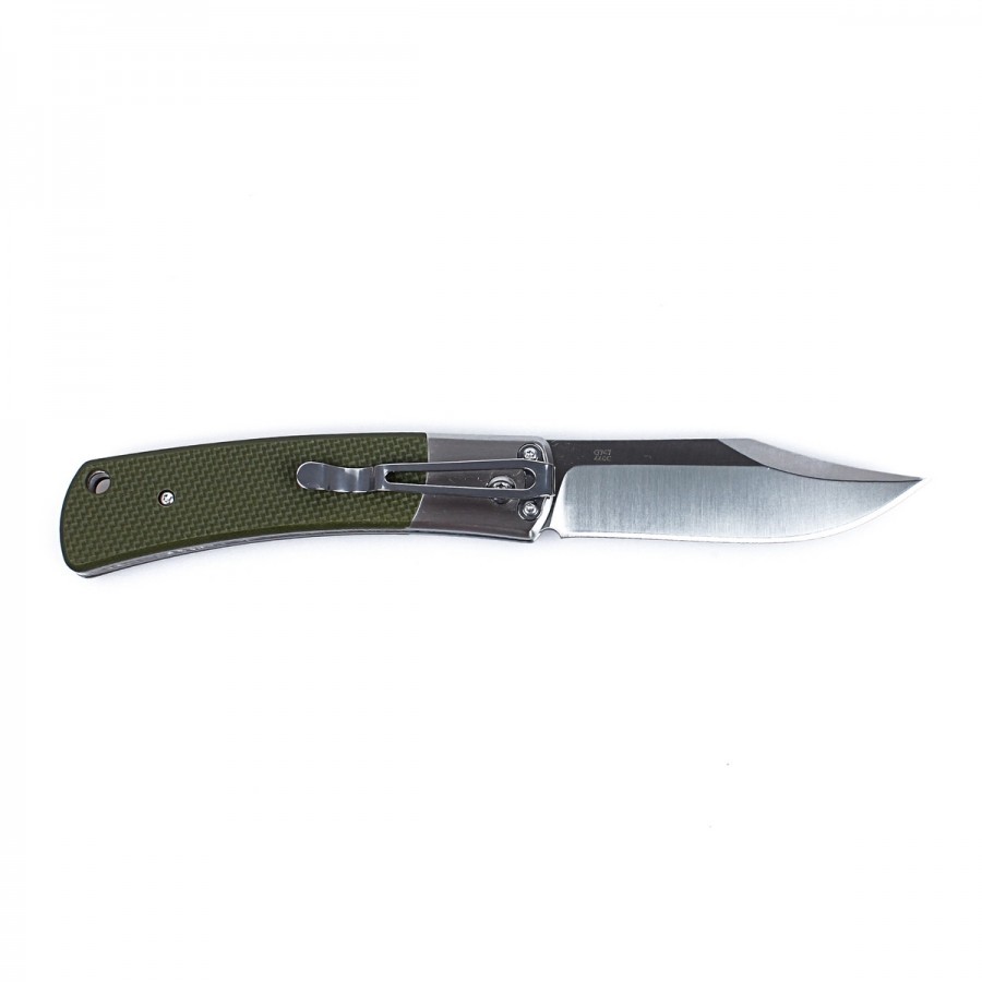 Baza mânerului - oțel. Corpul principal al mânerului este realizat cu cântarele din fibra de sticla G10. Ele pot fi negre sau verzi cu o textură care exclude alunecarea în palmă. G7471 are clemă de buzunar confortabilă din oțel, în plus, are și orificiu pentru curea. Elementul important al securității G7471 este Blocarea automată - siguranța unui mecanism durabil.
