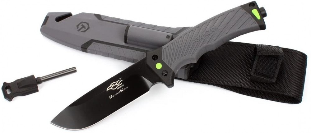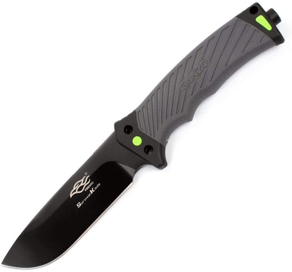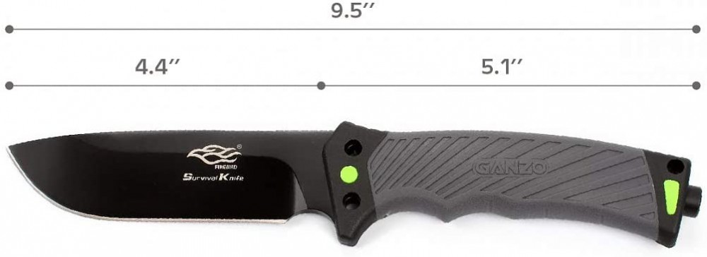 Lama este fabricată din oțel inoxidabil 440 și are o acoperire neagră pentru a preveni zgârierea oțelului. Profilul punctului de cădere și grosimea de 5 mm fac cuțitul potrivit pentru lucrări mai grele. Există o zonă desemnată pe spatele lamei pentru detectarea scânteii.