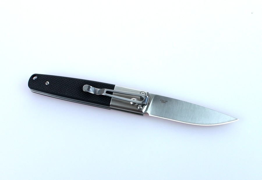 Lama este din oțel inoxidabil 440C;